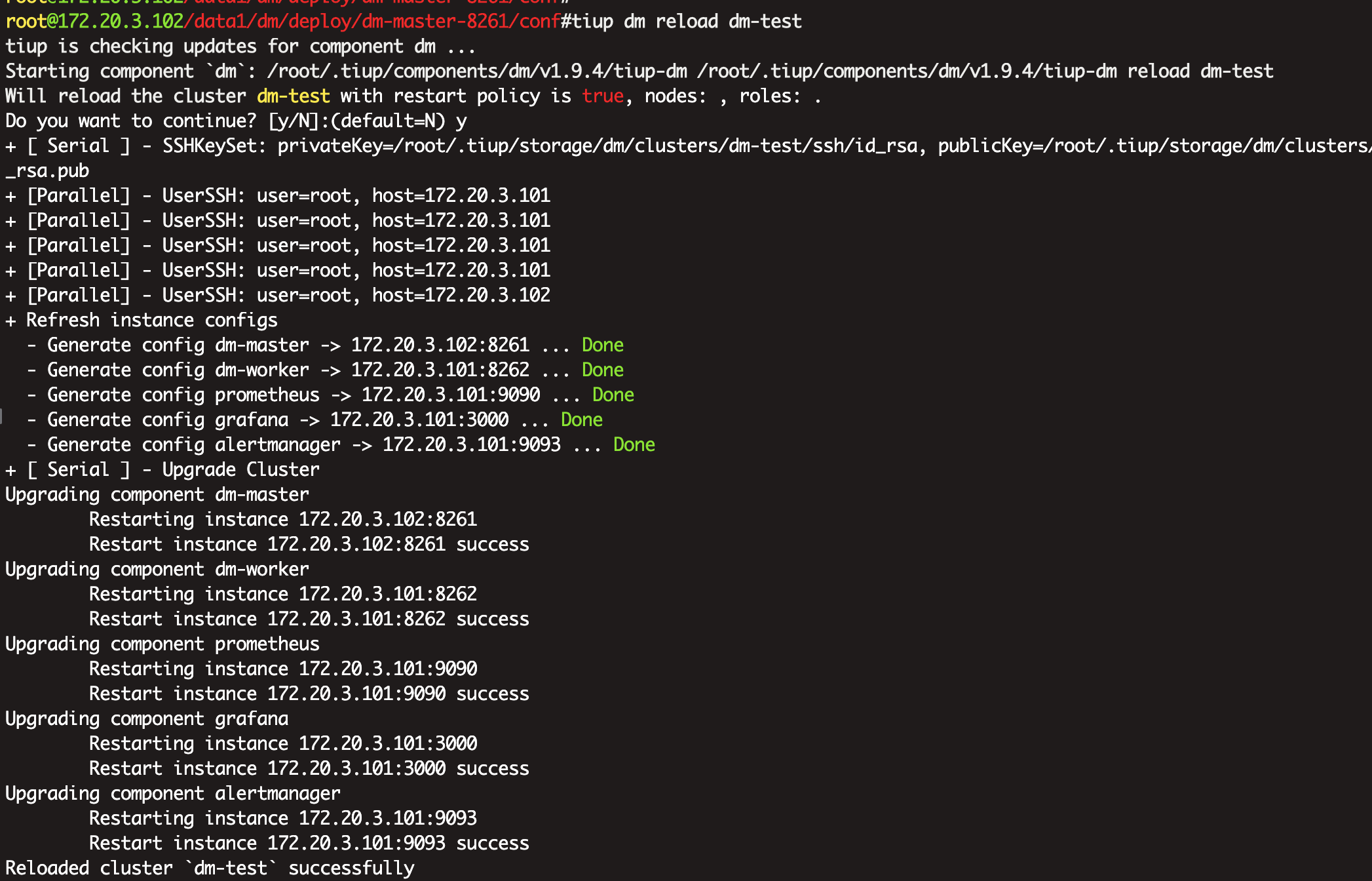 tiup dm reload使新的配置生效。