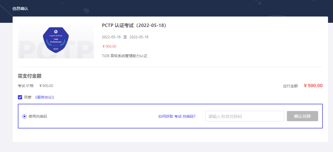 氪金大佬,我记得有个活动,看完相关课程后,有一次免费的PCTP认证机会~