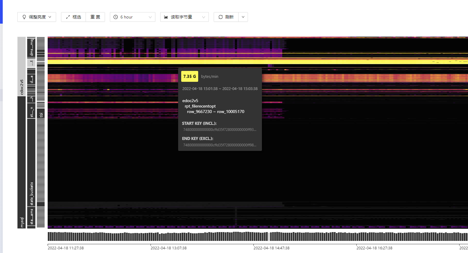 确实是读非常密集,而且看这个热力图是不是存在很严重的热点问题