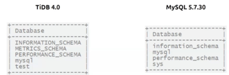 一、tidb 默认库与mysql5.7的差异