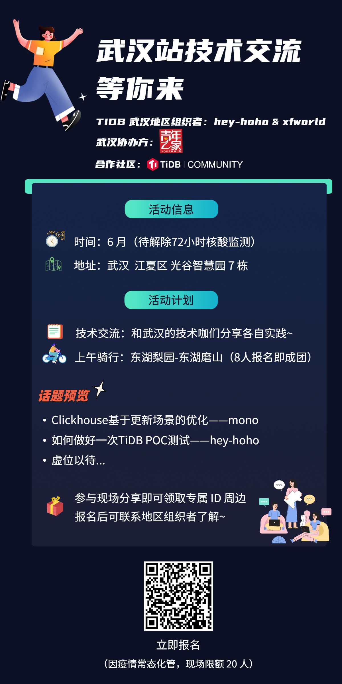 活动策划初期,大家就确立了地区活动的特色是建立地区技术人的交流&交友桥梁,目前已有 2 个分享嘉宾主动参与进来~