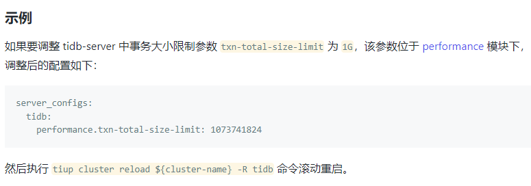 想把默认的104857600配置成1G,结果重启tidb发现配置无效