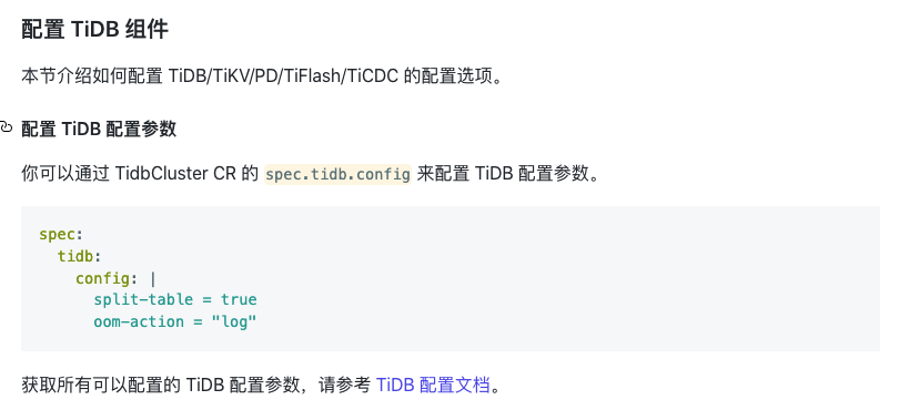使用命令:kubectl edit tc 进入编辑tidb组件的配置文件,如下: