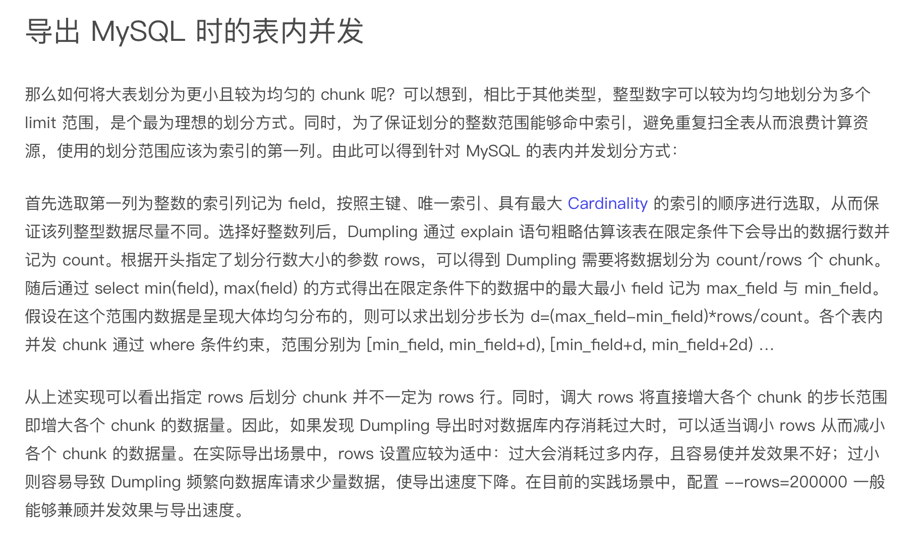 是的,比如 dumpling 就有分拆单表成 chunk 的机制;