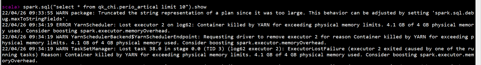 你这个错,不应该去tidb上找错误,应该是k8s的宿主节点内存不足,或者pod有mem的使用限制导致的oom,如果是测试,limit 10的情况下,改小EXECUTOR_MEMORY,改成2G试试。或者你导出失败节点的yaml给我,我分析一下。