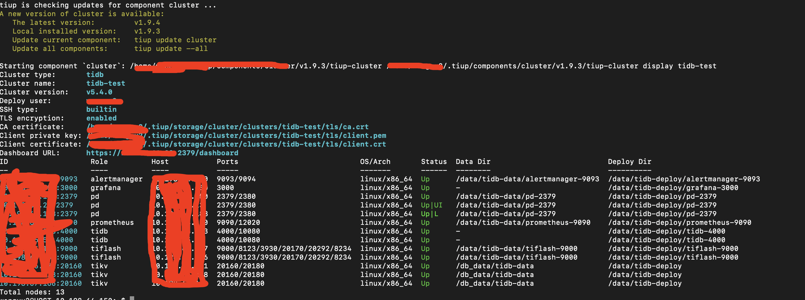 看一下这个的输出tiup cluster display --dashboard