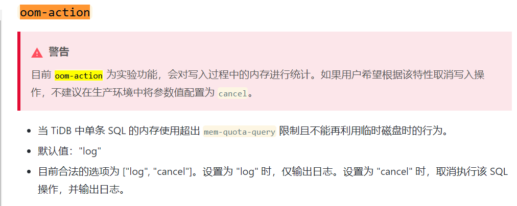当oom-action 设置为log时,仅仅输出日志,是不是说当单条语句的内存超过 mem-quota-query 限制且不能再利用临时磁盘的时候,这条语句也会一直跑下去,不会被kill,直到可能会导致tidb server oom为止?谢谢