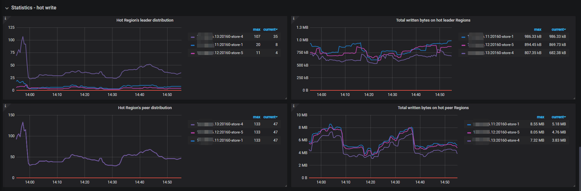 该TiKV节点上的热点region leader也远高于另外两个TiKV节点,见图2: