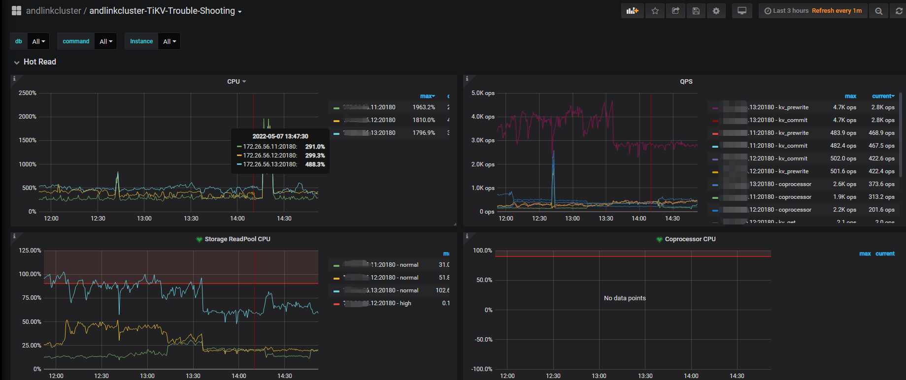 TiDB集群的某一个TiKV节点的QPS比另外两个TiKV节点的QPS高出好几倍,见图1: