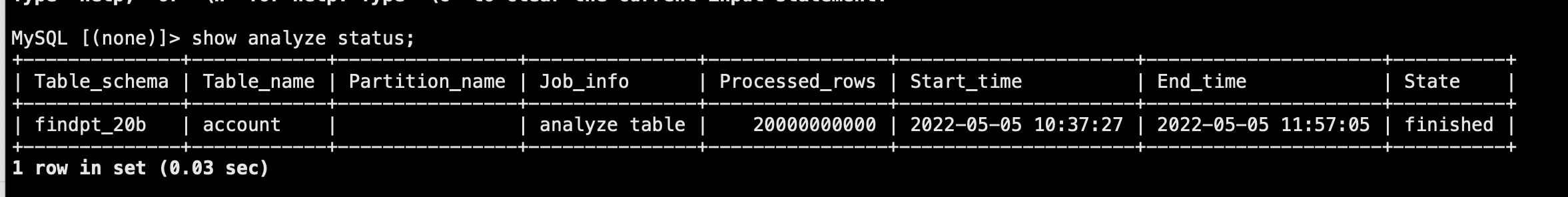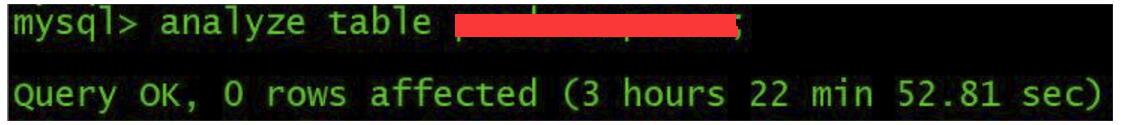 【遇到的问题】目前生产环境有2张大表,数据量:表一数据量46亿,占用空间大小1.25TB,表二数据量460亿,占用空间大小5.91TB,现在想使用analyze table对这二张表做分析,具体需要多长时间?有没有哪位大师有实际操作案例经验供分享一样,我好申请操作时间?