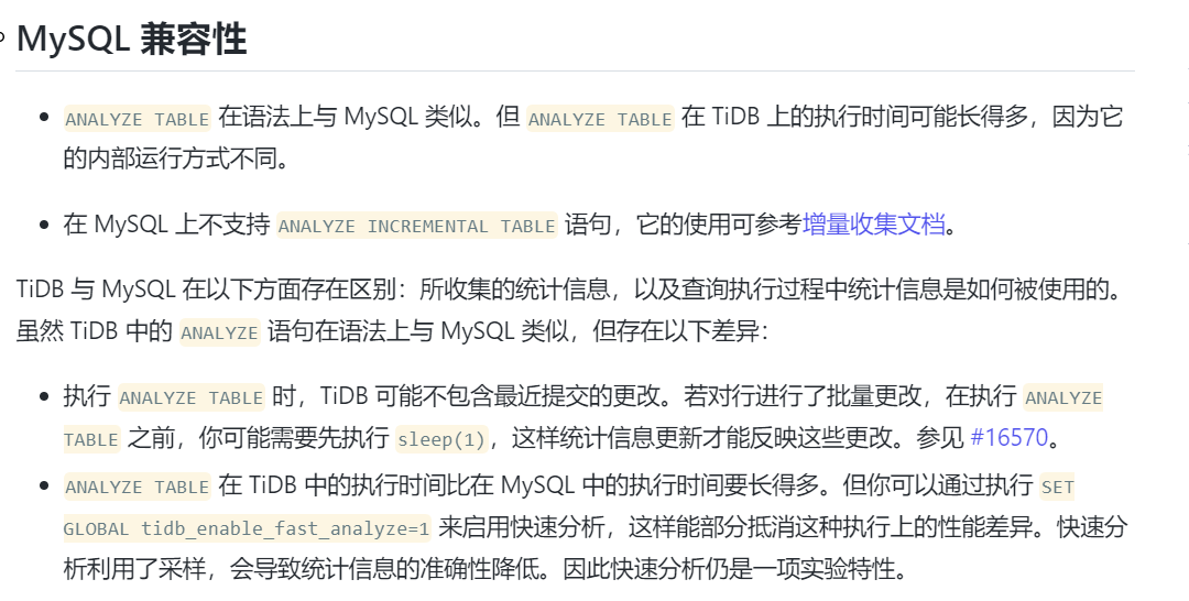 在tidb中执行analyze会不会锁表?以下是我从百度搜索到的,但是TiDB应该有区别?