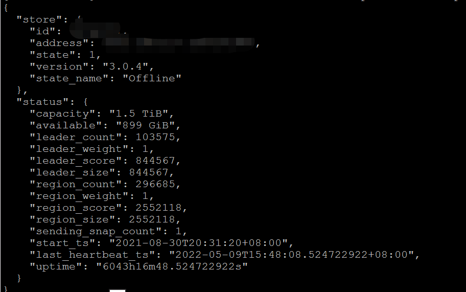 截图为下线前和下线过程中的pd-ctl 的查询结果