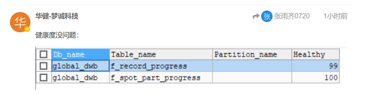 表的健康度信息