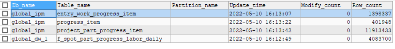 通过 SHOW STATS_HEALTHY 可以查看表的统计信息健康度,并粗略估计表上统计信息的准确度。当 modify_count >= row_count 时,健康度为 0;当 modify_count < row_count 时,健康度为 (1 - modify_count / row_count ) * 100。