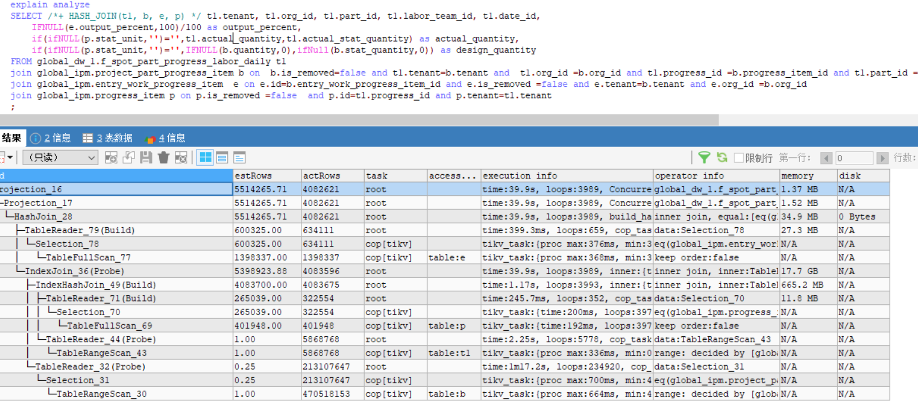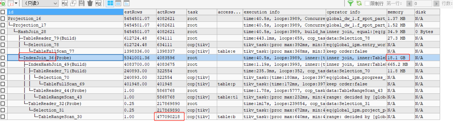 就算是都取到tidb里,这个表一共1156万行,实际取的行数是1.8亿,不太对劲呢