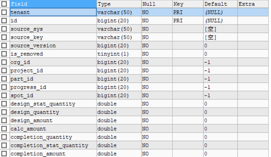select tenant, id, org_id, part_id, spot_id, progress_id, design_stat_quantity, design_quantity, design_amount