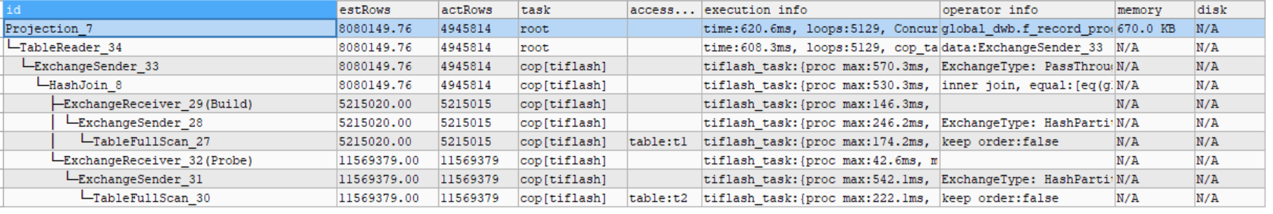 使用tiflash引擎跑: