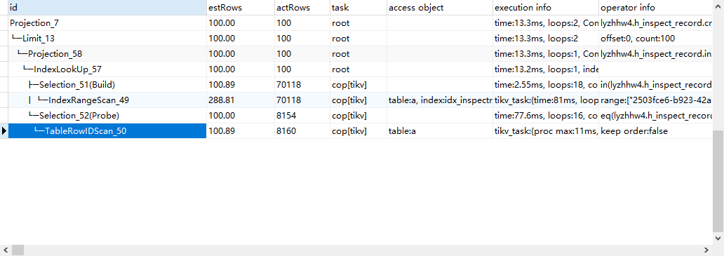 从actrows上看=2的数据(1199万)比=1的(8160条)明显要多很多。limit 没有下推到tikv导致=2时扫描大量数据返回后才应用limit,可以试试HINT :/*+ LIMIT_TO_COP() */ 或重新收集表统计信息看看