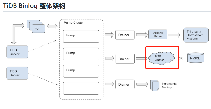 tidb binlog只能将tidb 1:1同步到下游,我这里是tidb里面有100个分表,要合并回去1张表,tidb binlog在同步的时候没办法完成这个功能。