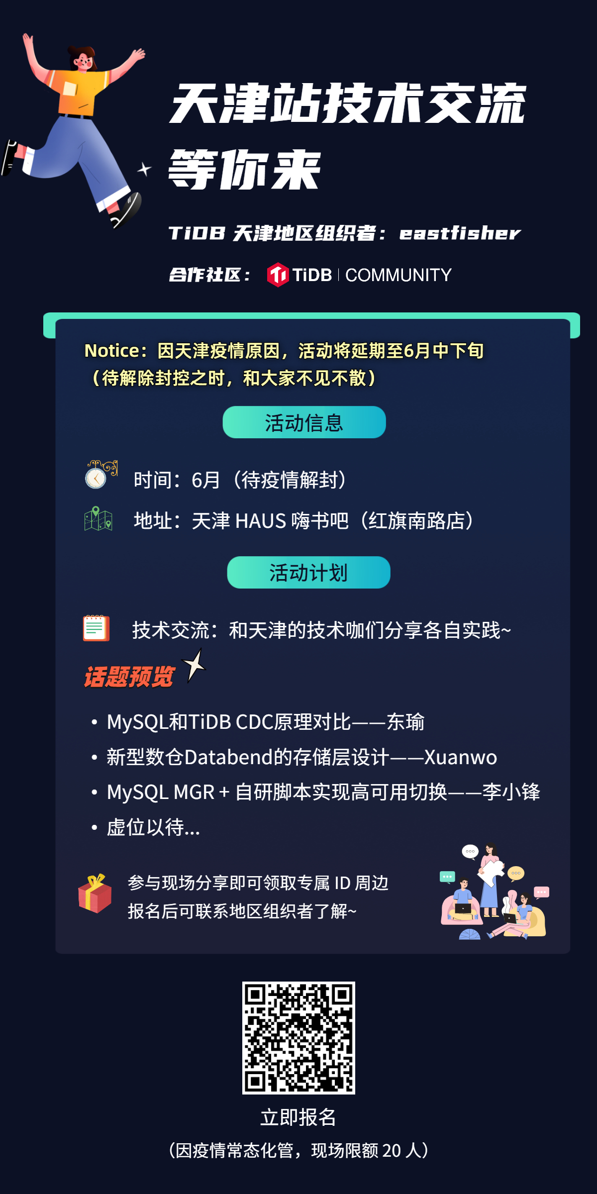 说明: 因疫情常态化管控,仅开放20人现场交流,报名从速~
