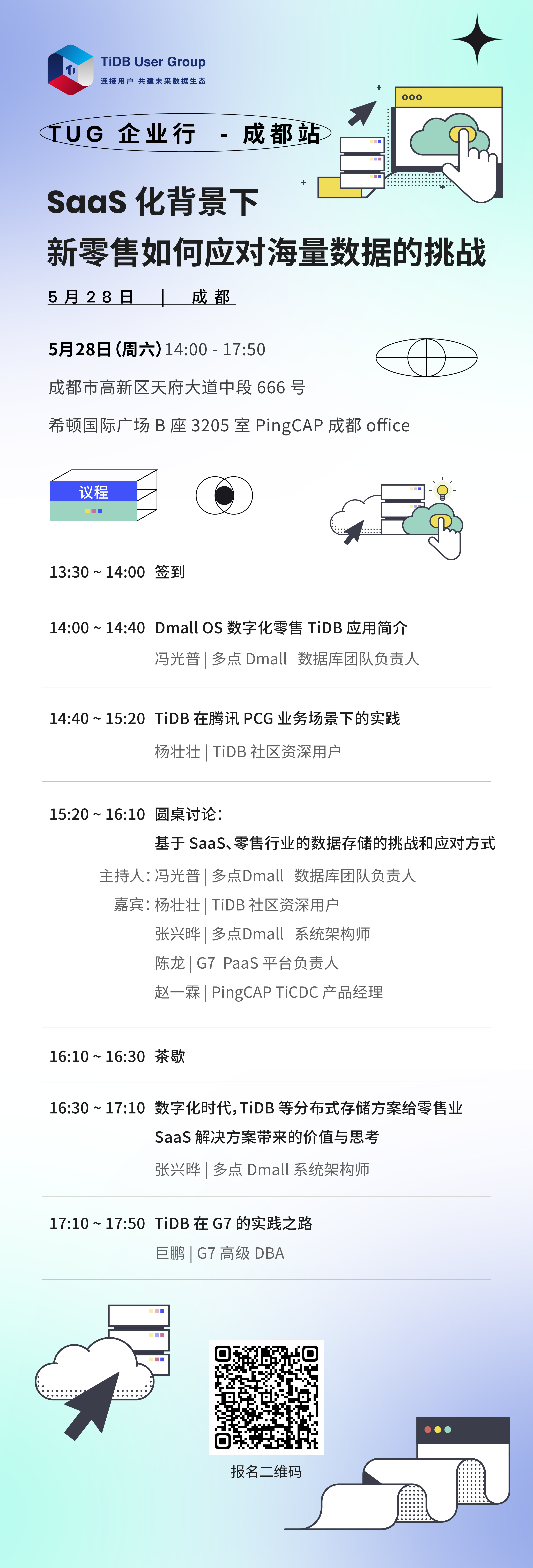 活动地点:成都市高新区天府大道中段 666 号希顿国际广场 B 座 3205 室 PingCAP 成都 office