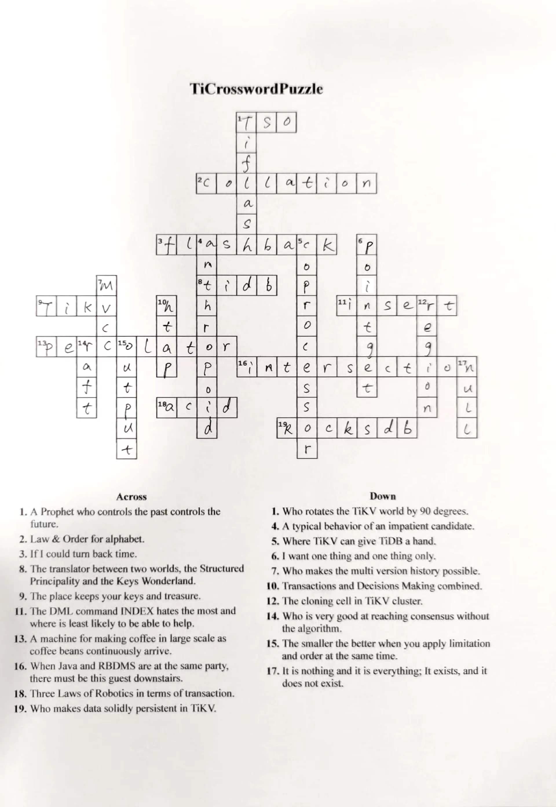 TiDB 填字游戏(TiCrosswordPuzzle) 欢迎广大 TiDBer 前来挑战!