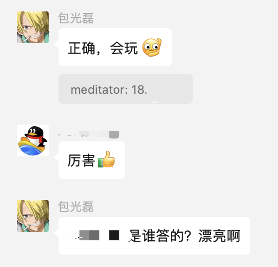 初见这个题目,Ti-Juaner 对题目的英文描述稍显抗拒。但区区英文,怎可能是集“聪明”+“幽默”+“上进”于一身的 Ti-Juaner 的对手,群里的各位大佬,如同打通了任督二脉,一个个精妙的答案接连蹦出。