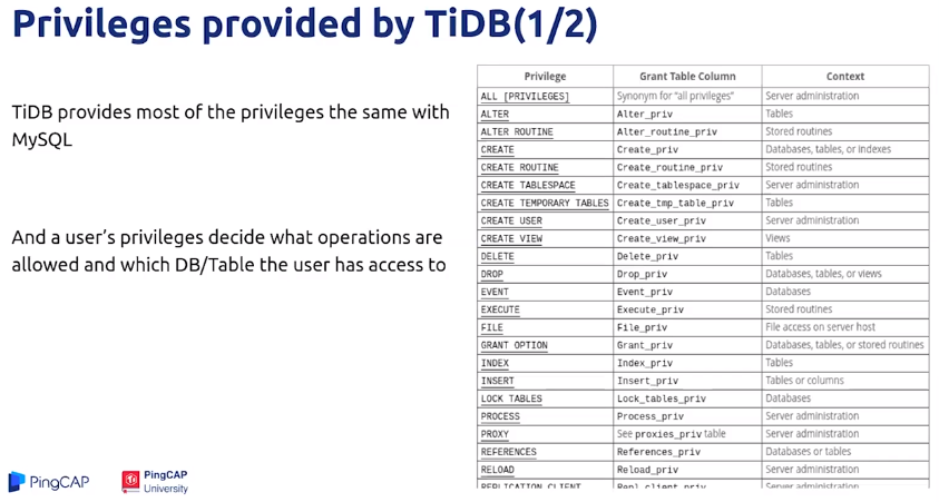 课程名称:课程版本(301)+ TiDB 的授权与认证