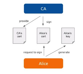 - 证书是证明秘钥所有者身份的文件,通常是由可信的机构签发certificate authority (CA)