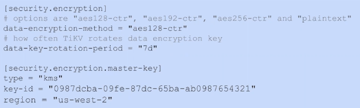 - 配置TiKV静态加密(数据保存在TiKV节点中)