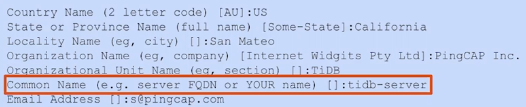 - 例如生成证书时填写TiDB Server作为CN