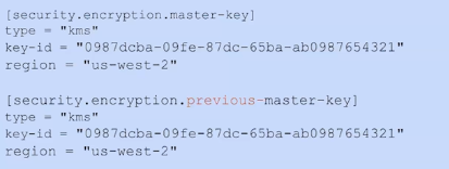 - 指定新的主秘钥(将旧的主秘钥重命名为previous-master-key)