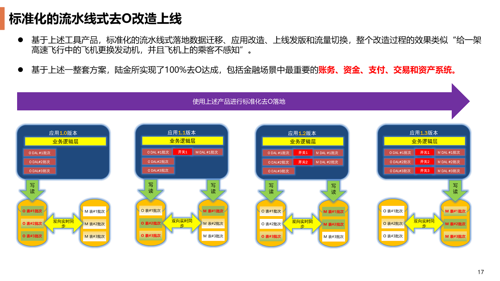 在金融核心系统持续对外提供服务的情况下,实现更换全套数据库是极具挑战性的架构改造工作。