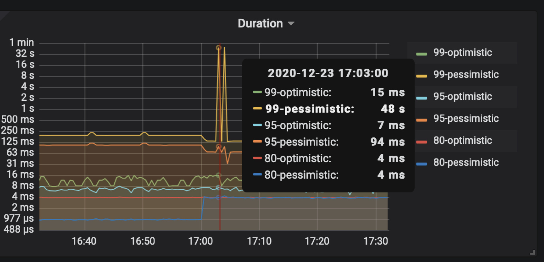 目前系统没有对第一个阶段设置相应的监控信息,这个过程通常很快,除非 channel 满了,否则 GetTSAsync 函数很快返回,而 channel 满表示 RPC 请求延迟可能过高,所以可以通过 RPC 请求的 Duration 来进一步分析。