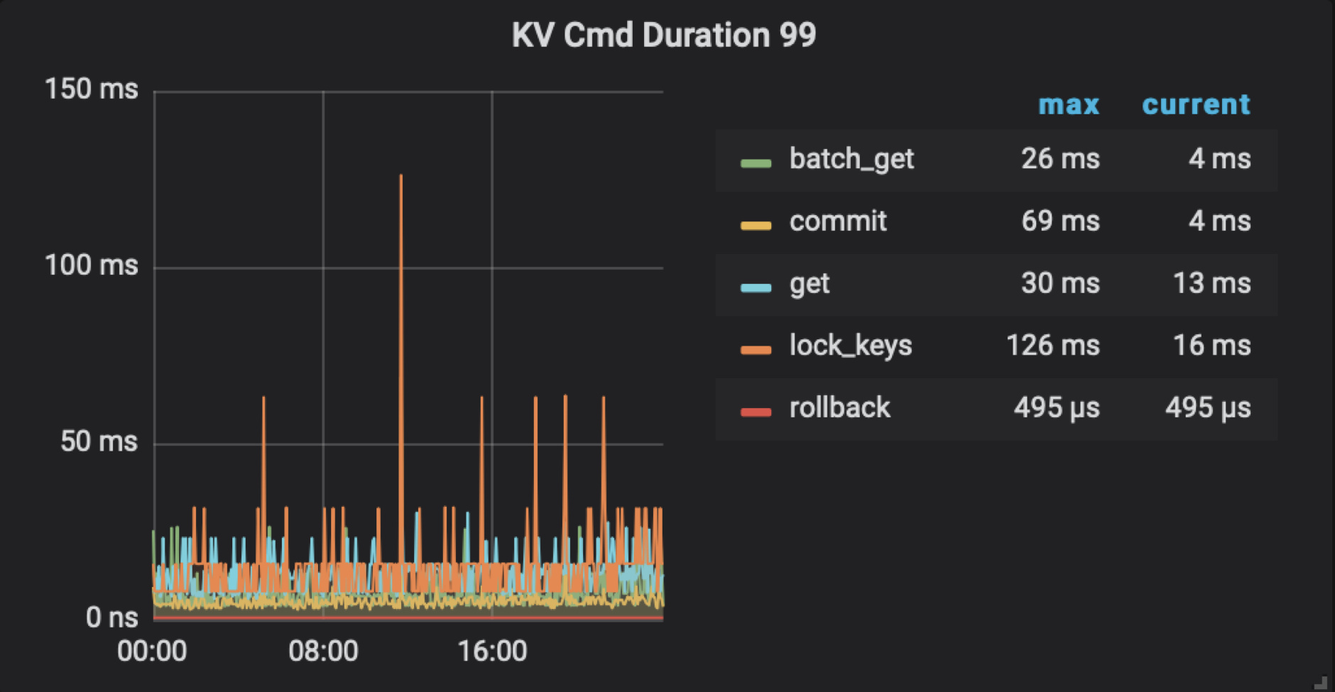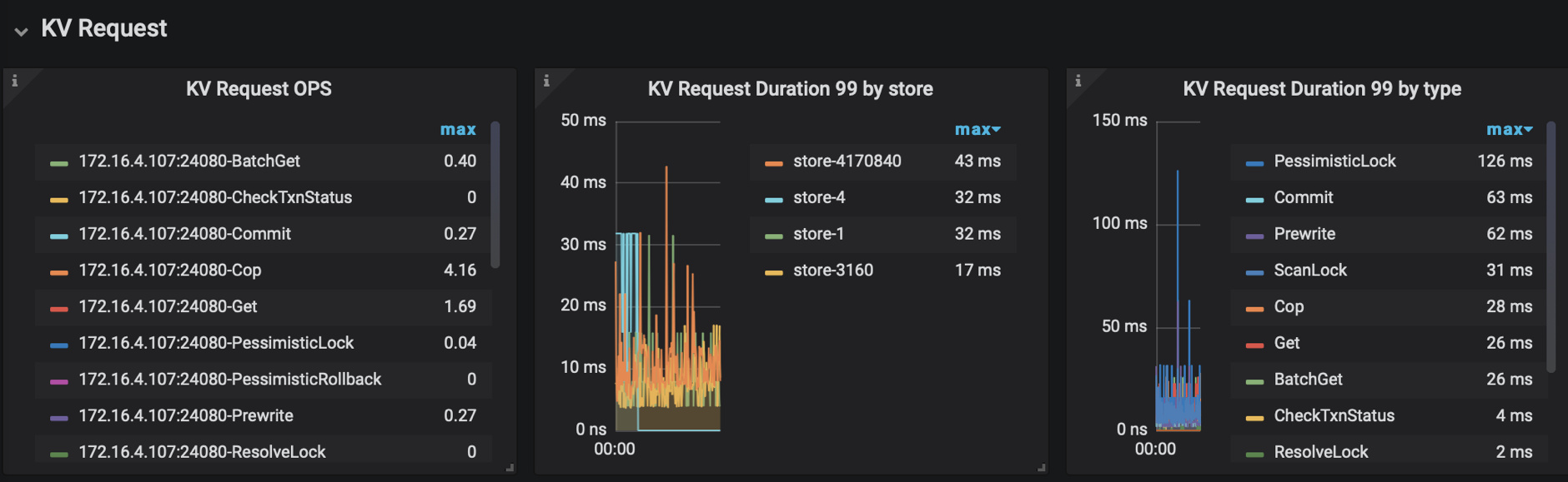 KV Request Duration 999 by type:KV Request 执行时间,根据请求类型显示