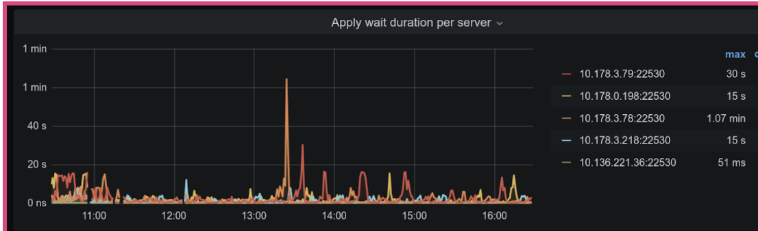 Raft log commit 后,会等待 apply ,这里可能会因为资源繁忙而出现等待的情况。