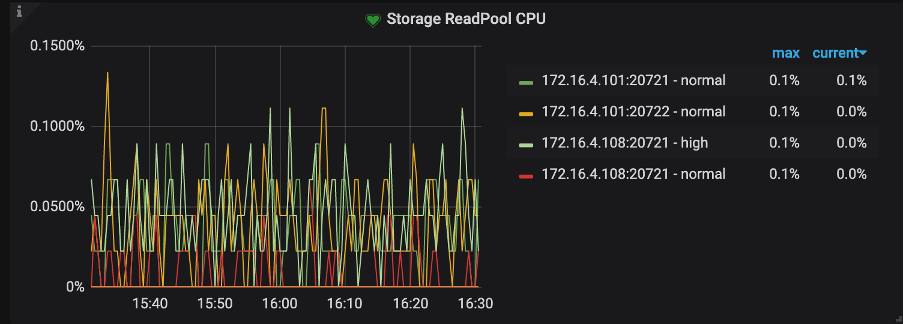 TiKV-Detail → Thread CPU ->Storage ReadPool CPU:Readpool 线程的 CPU 使用率