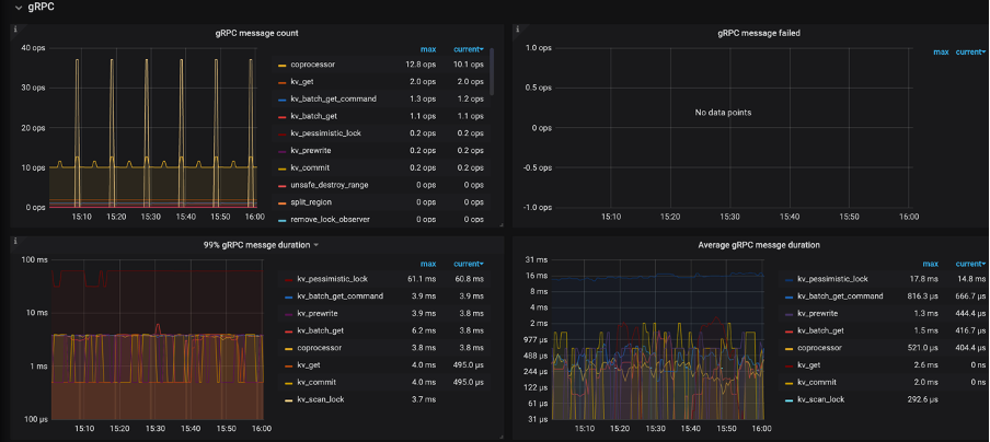 TiKV-Detail → gRPC → gRPC message duration:gRPC 消息的执行时间