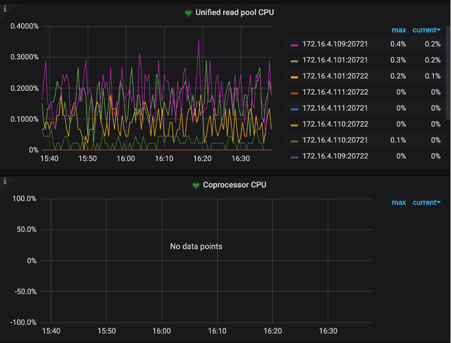 TiKV-Detail → Thread CPU → Coprocessor CPU:coprocessor 线程的 CPU 使用率