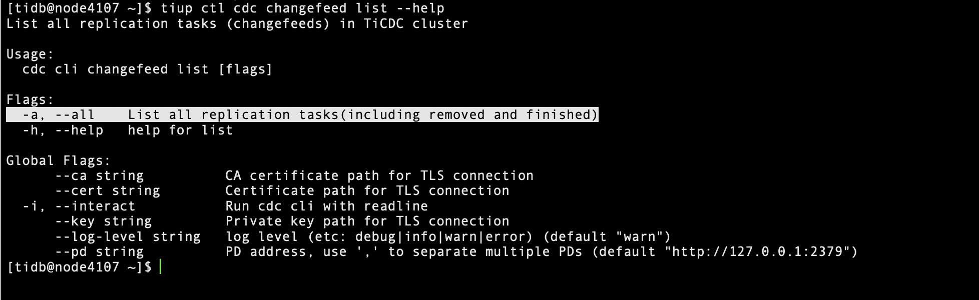 cdc cli changefeed list --pd=http://10.3.87.30:2379