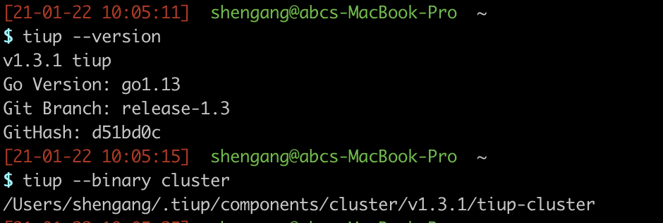 的输出结果,看下 tiup 的版本以及 cluster 的版本。