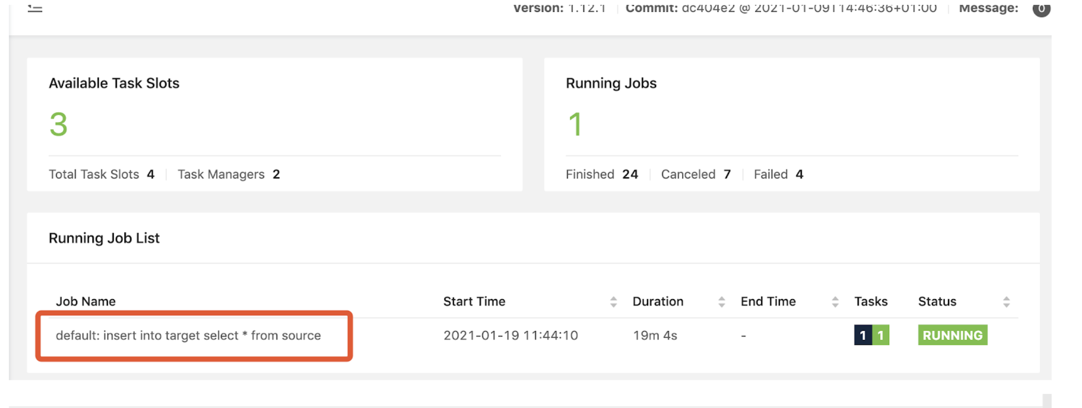 19.01.2021 11:44:10 : 683e4cfd7ae07762f212cdec869885d2 : default: insert into target select * from source (RUNNING)