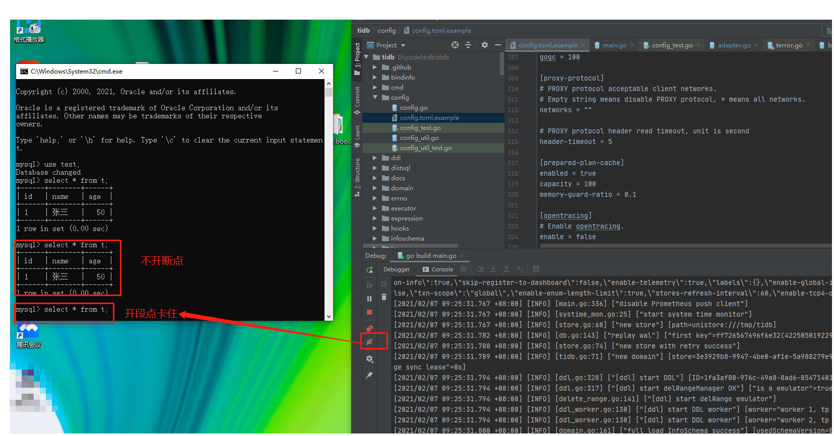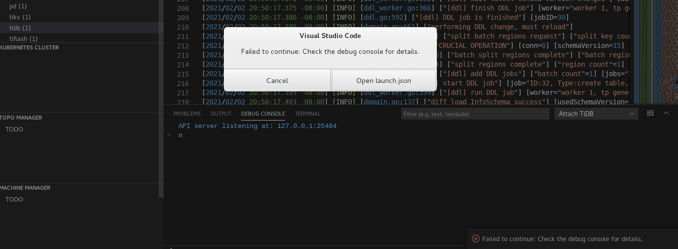 Hi,我们最近在 TiDB Hackathon 做了一个 VS Code 的插件可以来帮助单步 debug tidb。具体来说就是把当前本地的 TiDB 代码编译后,用此二进制启动一个本地集群,然后可以在 TiDB 代码里下断点进行单点调试。