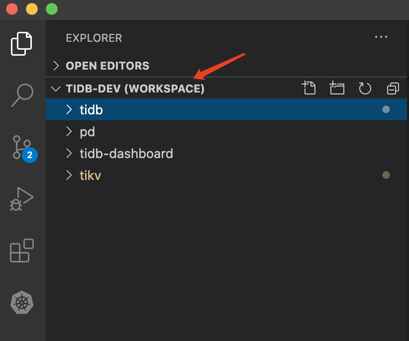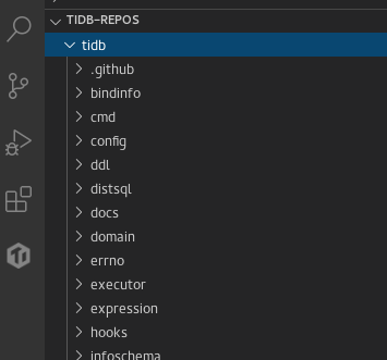 我似乎明白了,你用 VS Code 打开的是 tidb-repos 这个目录,但这并不是一个 workspace,如果是一个 workspace,它是会显示成这样的: