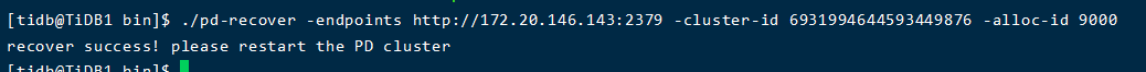 这一步是删除旧的数据目录,之后需要启动 pd 集群,然后再使用 pd-recover 进行恢复。
