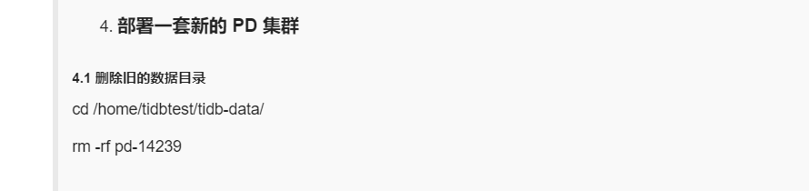 好的,谢谢,我看完了,这个第四步部署一套新的PD集群,额,就直接是删除这个目录嘛?
