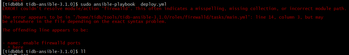 [tidb@b8 tidb-ansible-3.1.0]$ sudo ansible-playbook start.yml