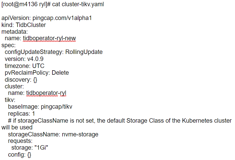 [root@m4136 ryl]# cat cluster-tikv.yaml (格式显示无缩进,请查看图片)