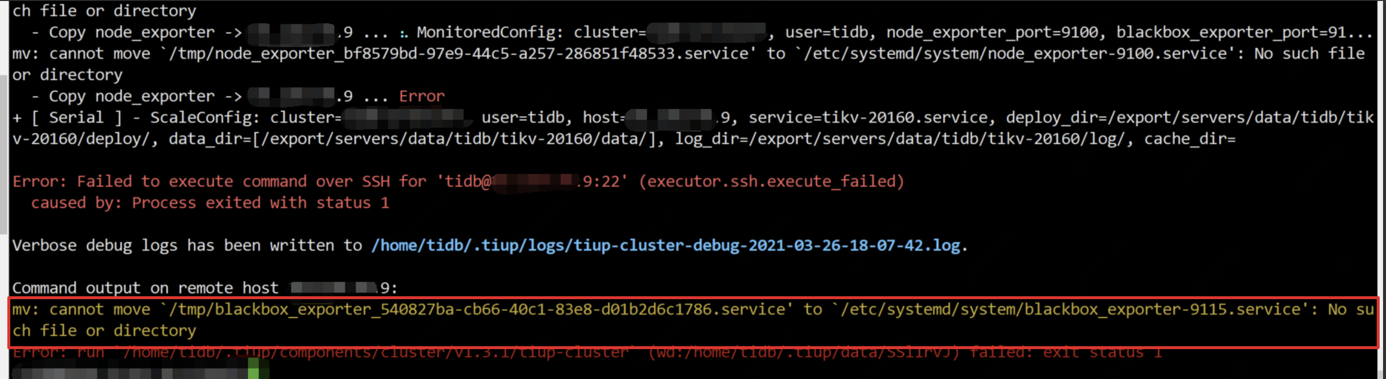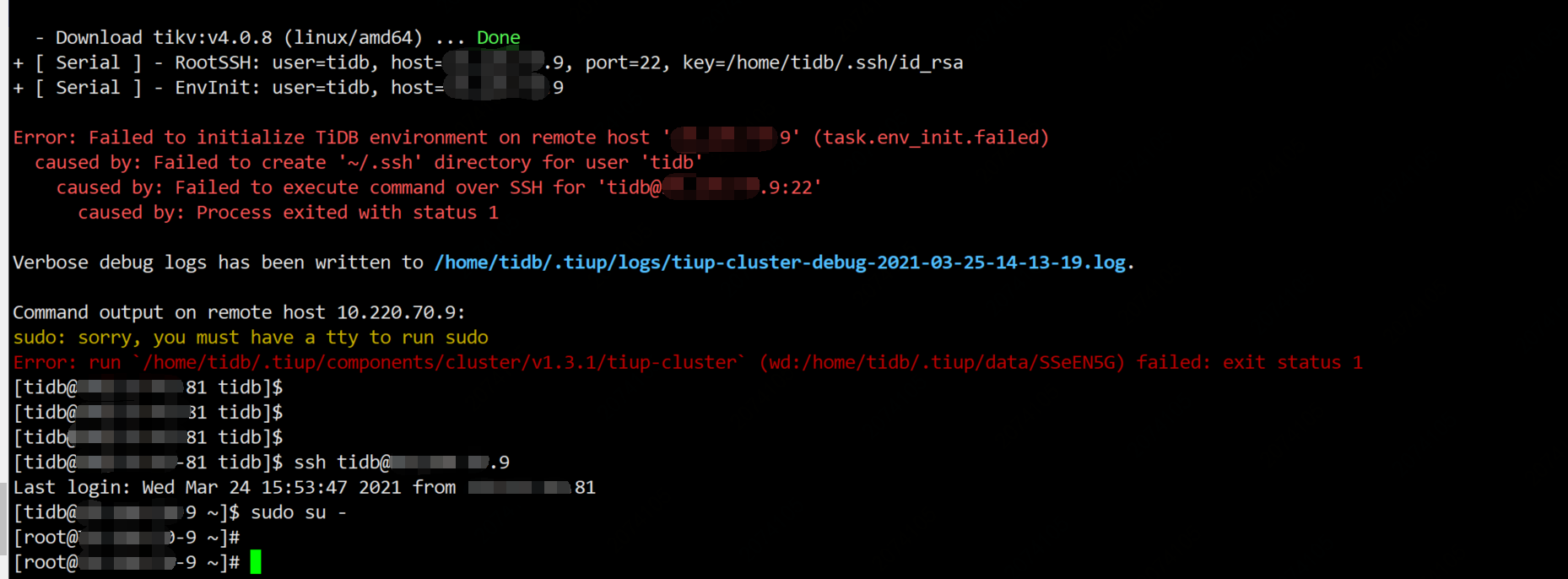 Error: Failed to execute command over SSH for ‘tidb@ 9:22’ (executor.ssh.execute_failed)