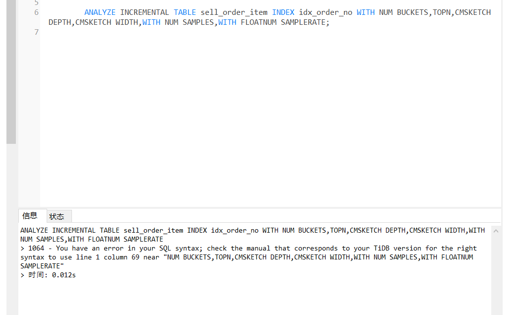 ANALYZE [INCREMENTAL] TABLE TableName [PARTITION PartitionNameList] [IndexNameList] [WITH NUM BUCKETS];